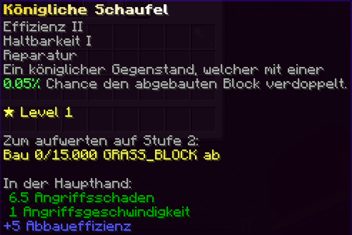 Ein königlicher Gegenstand, welcher mit einer 0,05% Chance den abgebauten Block verdoppelt.