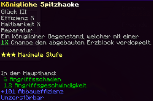 Ein königlicher Gegenstand, welcher mit einer 1% Chance den abgebauten Erzblock verdoppelt.